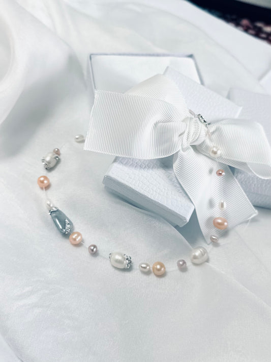 VICTORIA Floating Pearl Necklace Embellished with Swarovski crystals