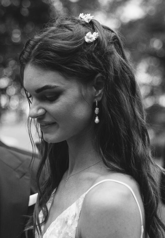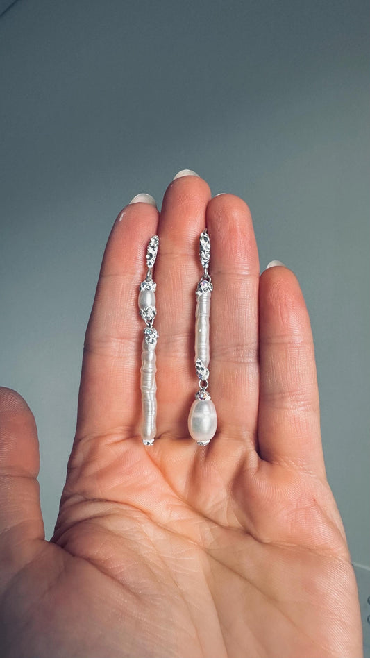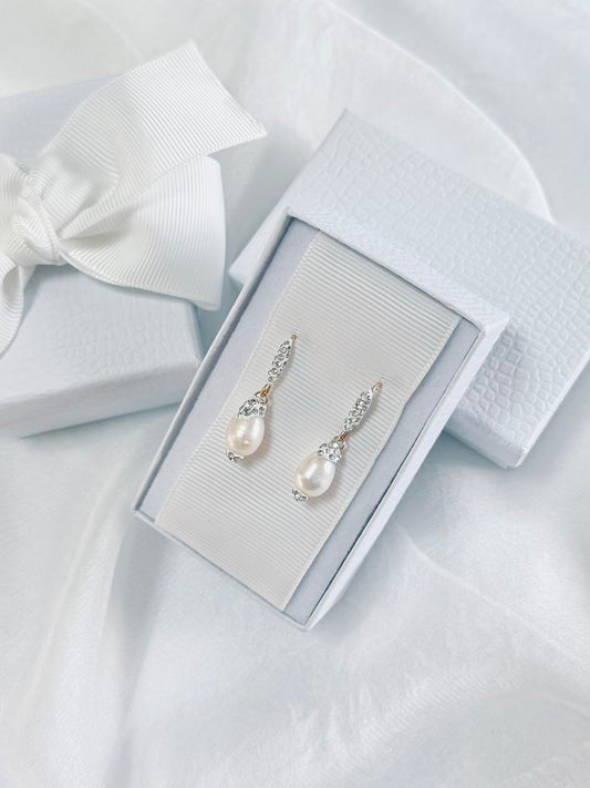 Pearl drop Earrings sterling silver or 14k gold with Swarovski crystals