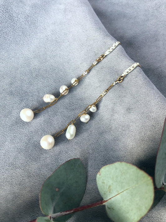 Bridal Earring 14k Gold Long Pearl Drop Dangle | Gold Tassel Drop Earrings | Bridal Wedding Earrings